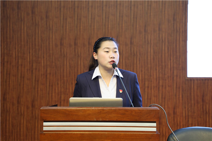 按照抽签顺序,王思氩老师首先进行竞聘演讲。王思氩老师以幽默风趣的语词介绍了自己与任教学科的缘分,以自信谦逊的口吻讲述一路走来取得的成绩,以朴实无华但简短有力的语句表达了辅导员的工作规划,最后以条理清晰的答案回答了杨宗武书记的提问。